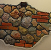 L'opera rappresenta un muro con intonaco staccato e pietre e mattoni a vista. Dipinto direttamente sul muro con colori acrilici e aerografo.